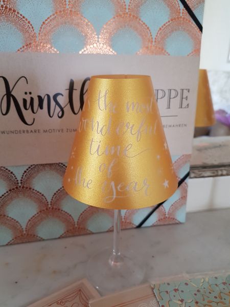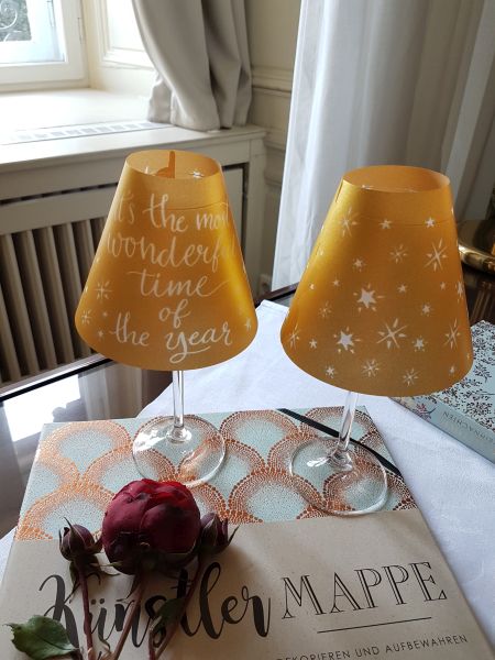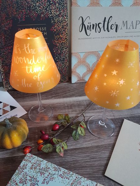 Dafür benötigen wir nur ein Weinglas und ein Teelicht und natürlich die Vorlage von arsEdition und schon kann es losgehen. Innerhalb kurzer Zeit waren die dekorativen stilvollen Lampen fertig.