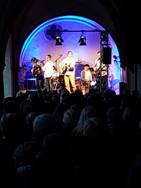 Hier treffen sich alle Generationen: Ich hatte meinen zehnjährigen Sohn dabei, der sich nicht davon abbringen ließ, mich zu begleiten. Und auch er war völlig begeistert von der Umgebung und dem Konzert, obwohl seine Musikrichtung eine andere ist. Die Gruppe „Waiting für Frank“, die im „Irish Folk“ zu Hause ist, hatten unglaubliche berührende Lieder, aber auch stimmungsvolle Stücke im Gepäck. Ich kam vom Träumen ins Wippen und umgekehrt. Die fünf Jungs aus dem Bergsträßer Raum waren schon als Jugendliche gemeinsam in Irland auf Reisen. Sie wurden dabei immer von Liederbüchern und ihren Gitarren begleitet und dort wurde die Vision geboren, einmal gemeinsam Musik zu machen. Wie man sieht, haben sie es umgesetzt und die Leidenschaft ist bei jedem ihrer Lieder zu spüren.