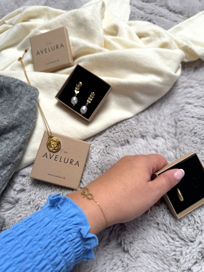 Gold ist ein Edelmetall, das eine unvergleichliche Ausstrahlung besitzt. Es schimmert warm, passt zu jedem Hautton und wertet selbst die schlichtesten Outfits sofort auf. Ein wichtiger Grund für den aktuellen Hype liegt auch in der zunehmenden Bedeutung von Nachhaltigkeit. So setzen Schmuckhersteller heute vermehrt faire Herstellung und nachhaltige Aspekte. So bin ich auch auf AVELURA gestoßen. Der Shop bietet langlebigen Schmuck aus hochwertigem Edelstahl, der mit 14 K vergoldet wird und so als Alternative zu kurzlebigem Modeschmuck fungiert. Damit entspricht er nicht nur ästhetischen, sondern auch ethischen Ansprüchen einer bewussten Konsumgeneration.
