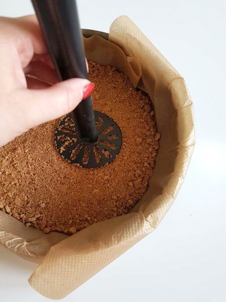 - Zunächst benötigt ihr einen verschließbaren Gefrierbeutel und ein Nudelholz. Die Kekse in den Gefrierbeutel geben und mit dem Nudelholz ganz klein bröseln, indem ihr immer wieder über den Beutel fahrt. Anschließend gebt ihr das Päckchen mit Vanillinzucker mit in den Beutel und schüttelt es einmal durch. Dann lasst ihr eure Butter in einem Topf flüssig werden und gebt sie anschließend unter eure Keksbrösel. Das Ganze kommt nun in eine Springform und wird fest an den Boden gedrückt. Das könnt ihr sehr schön mit einem Stampfer machen. (Den Tipp habe ich bei Anja von Castlemaker gelesen, die auch einen Kuchen ohne backen gezaubert hat. Hier findet ihr das Rezept für ihren Einhorn-Käsekuchen) Der Boden ist jetzt fertig.