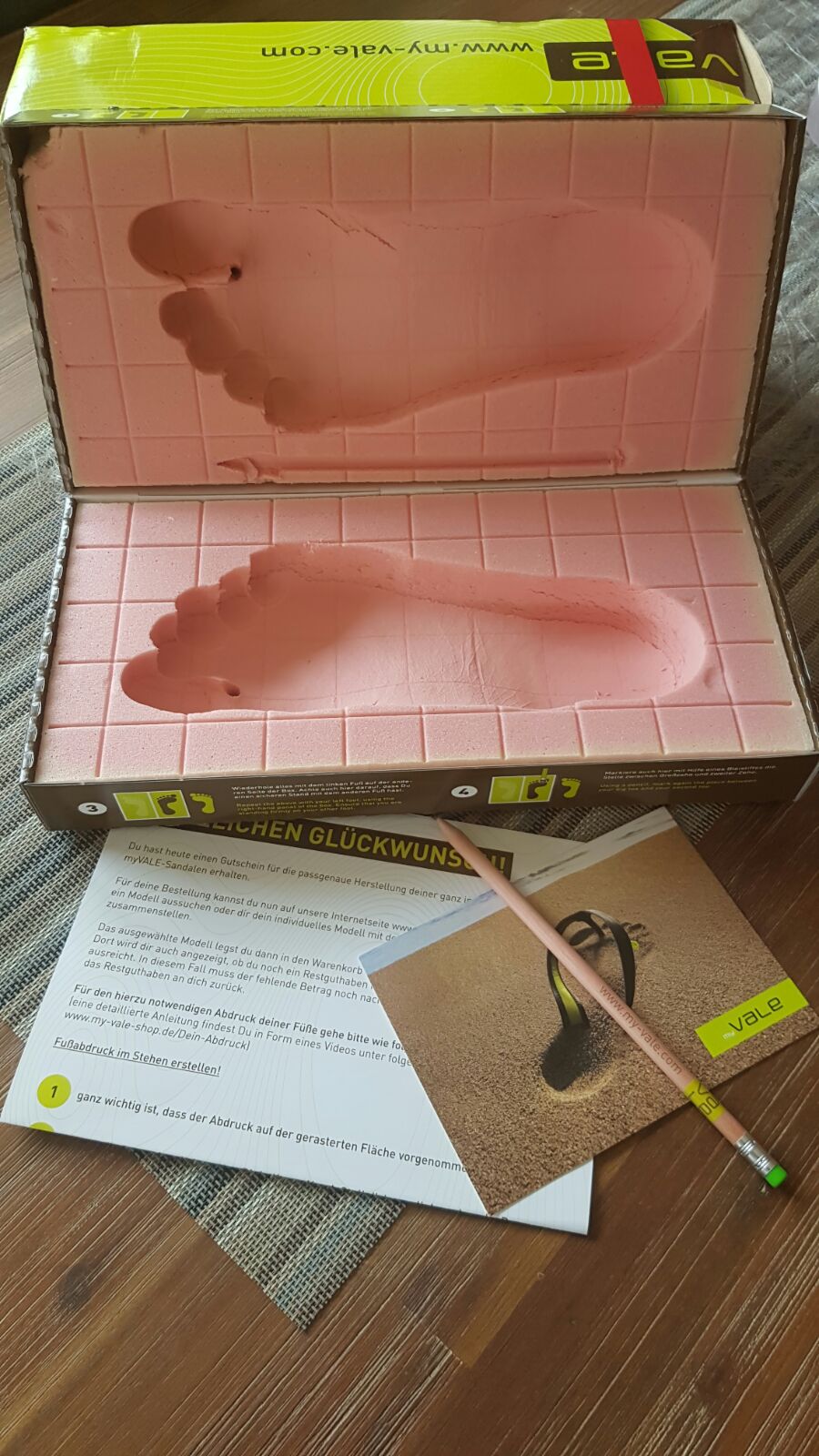 Du findest darin eine genaue Anleitung – sogar ein Bleistift ist dabei. Du brauchst also nichts außer deinen Fuß, alles andere liefert das Unternehmen.