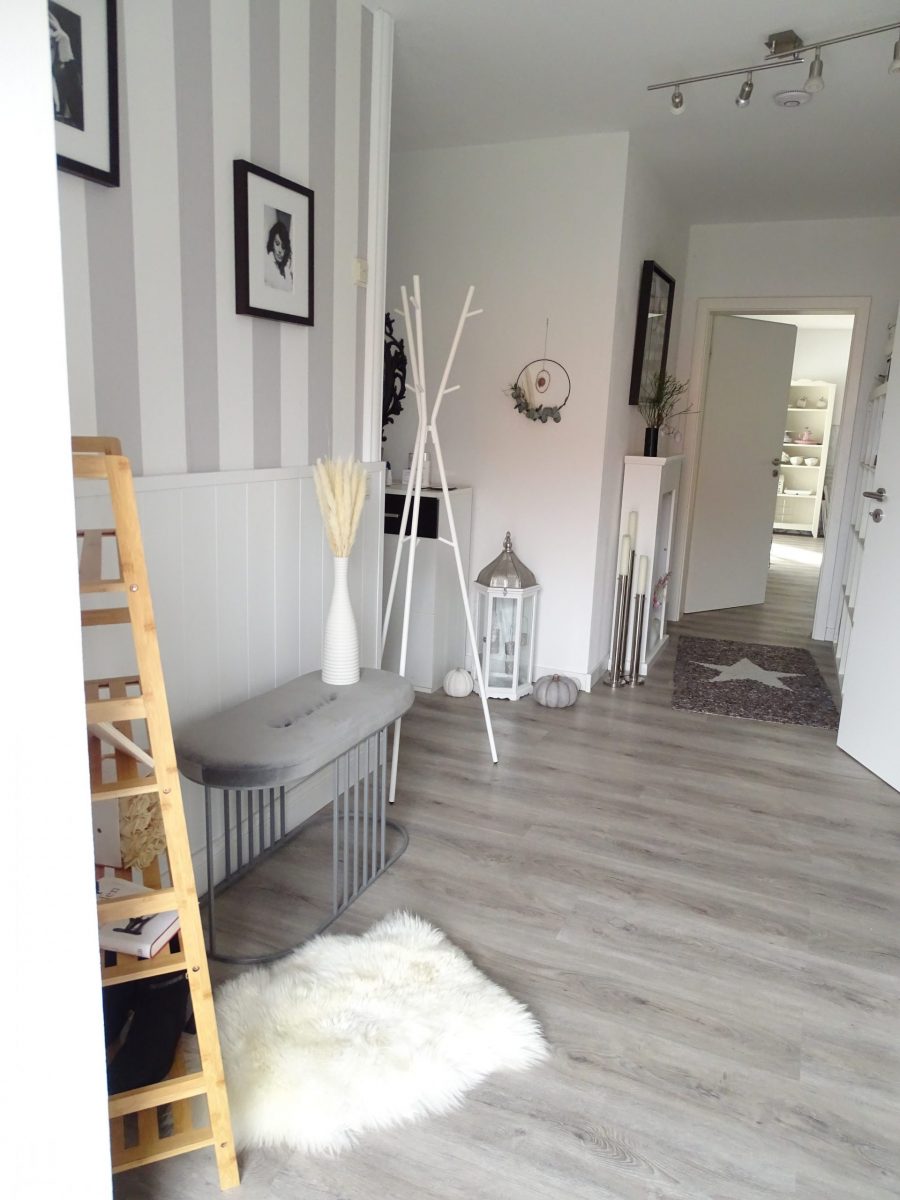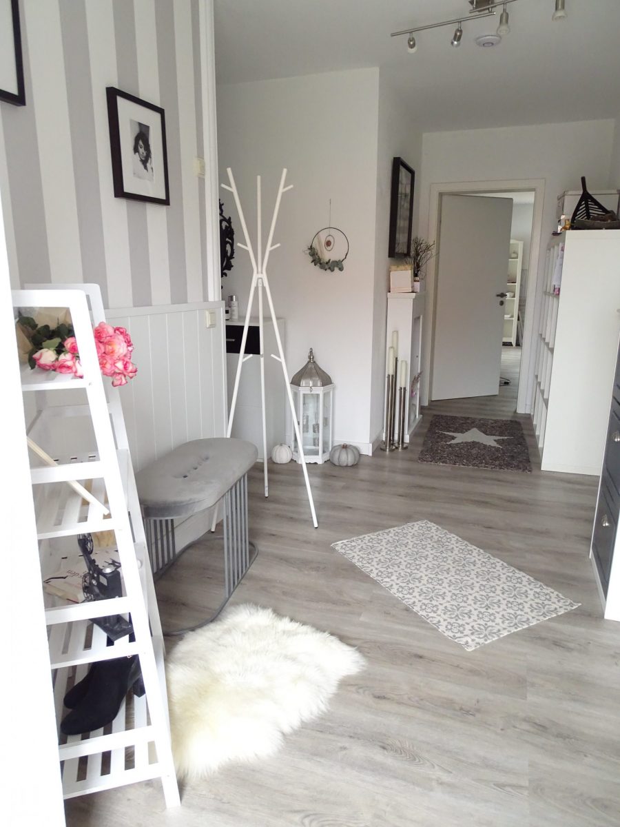 Ich hatte ein Leiter-Regal auf dem Speicher, welches mir farblich gar nicht mehr gefallen hat. Wer meine DIY-Beiträge regelmäßig liest, der weiß, dass ich vieles in Grau und Weiß umgestalte und mich dabei der Landhausstil unter anderem inspiriert.