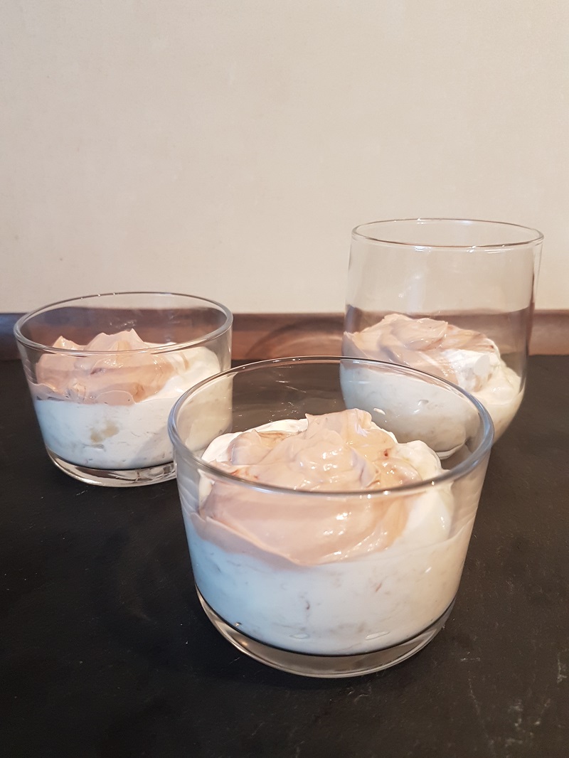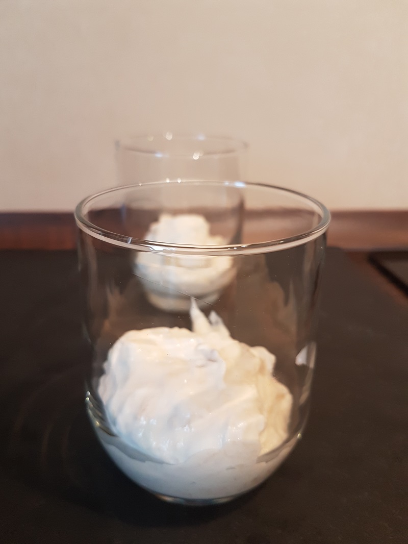 Gebt ein paar Beeren hinzu, das frischt das Ganze noch enorm auf und wertet das Dessert auch optisch auf!