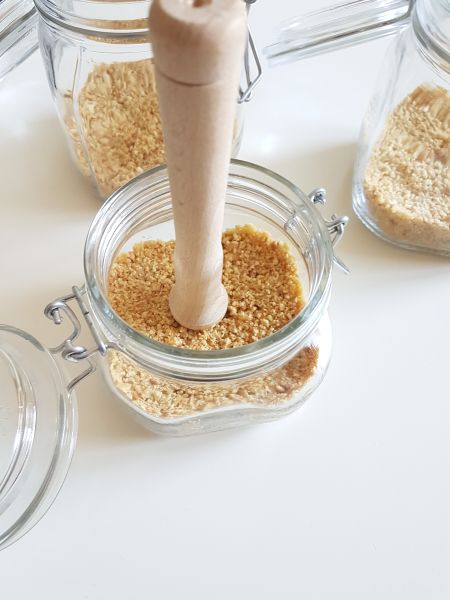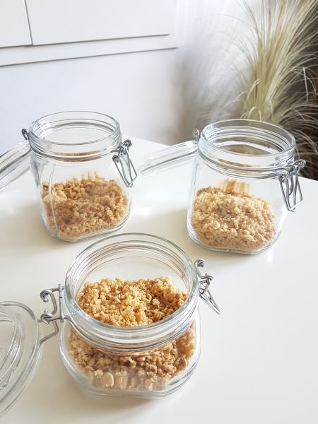 - Zunächst benötigt ihr einen verschließbaren Gefrierbeutel und ein Nudelholz. Die Kekse in den Gefrierbeutel geben und mit dem Nudelholz ganz klein bröseln, indem ihr immer wieder über den Beutel fahrt. Dann lasst ihr eure Butter in einem Topf flüssig werden und gebt sie anschließend unter eure Keksbrösel. Das Ganze kommt nun Einmachgläser und wird fest an den jeweiligen Boden gedrückt. Das könnt ihr mit einem Holzstößel machen. Der Boden ist jetzt fertig.