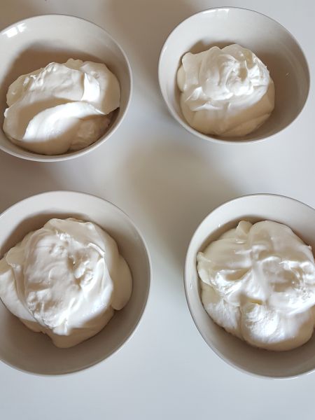 - Für die Creme schlagt ihr eure Sahne zunächst fest. Im Anschluss daran gebt ihr die Mascarpone und den Frischkäse in ein separates Gefäß und verrührt die zwei Zutaten gemeinsam mit dem Zucker und dem Saft einer halben Zitrone. Danach hebt ihr einfach die Sahne unter. Schmeckt das Ganze einfach ab, ob ihr es frischer mögt, dann gebt noch etwas Zitrone hinzu oder mehr Zucker, wenn ihr es süßer mögt.