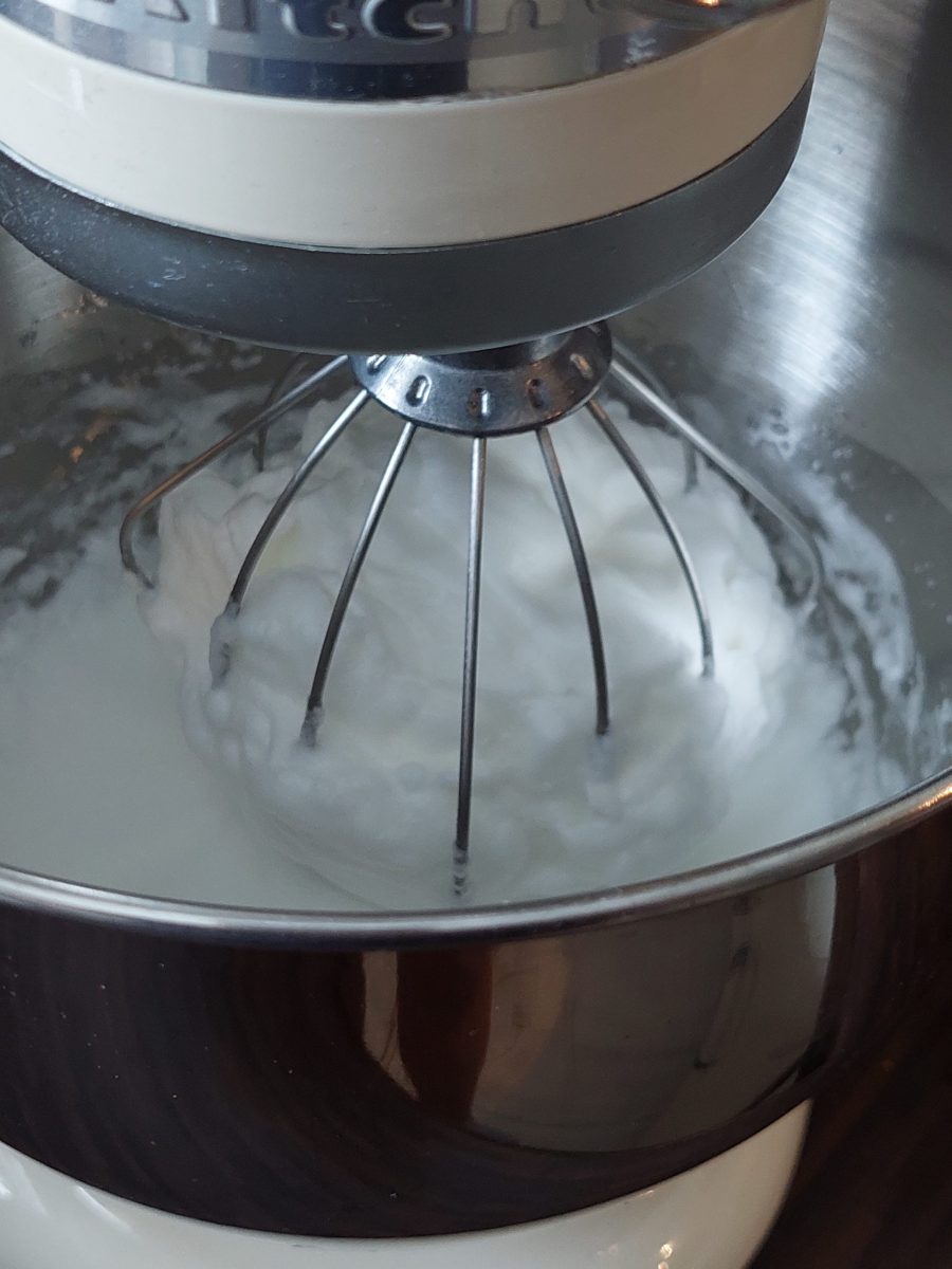 Zum Schluss gebt ihr das Eiweiß unter die Masse. Hebt es vorsichtig unter. Dann befüllt ihr eine kleine Backform. Meine war 23 cm in der Breite und 30 cm in der Länge groß. Die Form legt ihr vorher mit Backpapier aus.
