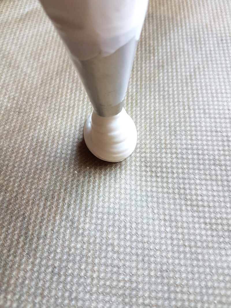 Die Masse wird in einen Spritzbeutel gegeben und auf ein Backpapier in einem runden Kreis aufgespritzt. Unten muss das Gespenst breiter sein und nach oben hin wird es immer spitzer.