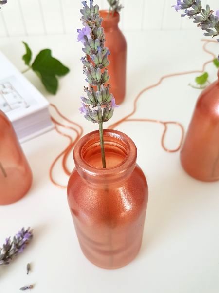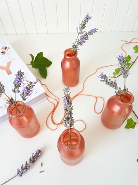 Hier könnt ihr alle Vasen nehmen, die ihr nicht mehr benötigt bzw., die ihr aufhübschen möchtet. Mit ein paar Lavendelzweigen wirklich schön anzusehen!
