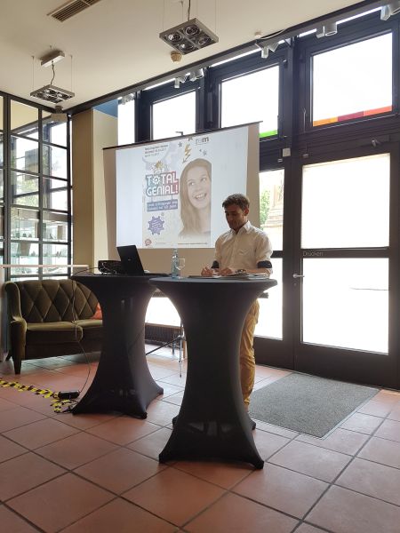 Während unsere Kinder beschäftigt waren, ging es bei uns Erwachsenen um Daten und Fakten. Was macht diese Ausstellung so besonders und welche Hintergründe verbirgt sie? Norman Schäfer, stellvertretender Marketingleiter (rechts im Bild) leite die Vorträge ein. Im Anschluss erzählte uns der Direktor des Museums, Dr. Wilfried Rosedahl, was die Beweggründe für ihn waren, diese Mitmach-Ausstellung in das Museum zu integrieren. Er hasst verstaubte Indoor-Spielplätze und liebt es, wenn Kinder sich frei entfalten können und dabei etwas lernen. Außerdem war Marcus Heider, Marketingleiter des Grazer Kindermuseums FRida & freD extra angereist, um uns mit seinen Worten mitzureißen (links im Bild).