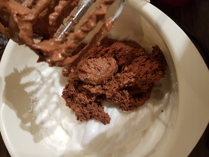 Zubereitung: Zunächst das Ei trennen und vier Eiweiße steif schlagen. In einer weiteren Schüssel 3 Eigelbe, Sojamilch, Backkakao und das Backpulver miteinander verrühren. Das Ganze unter das steife Eiweiß geben und mit dem Mixer glatt rühren.