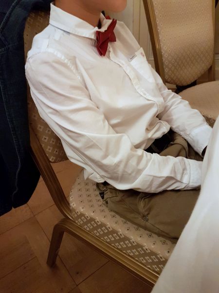 Das Praktische war, dass mein Sohn seine Kleidung sowohl bei der Hochzeit in der Kirche als auch bei der anschließenden Feier tragen konnte. Denn später zog er einfach sein Jacket aus und so hatte er ein lässiges Outfit. Das konnte ihn den ganzen Abend über begleiten.