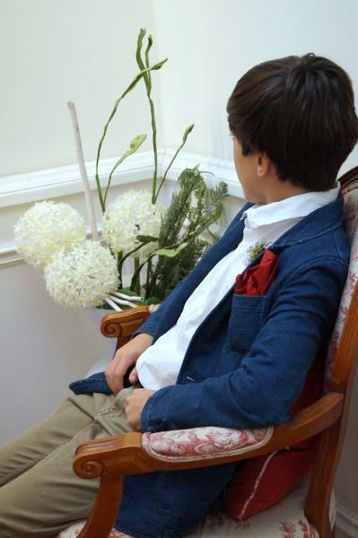 Das haben wir bereits auf der Kommunion unserer beiden Söhne so gehalten, denn die klassischen Anzüge von der Stange, die es in den typischen Kommunionsläden zu kaufen gibt, die gefallen mir nicht. Ich suche lieber jedes Teil einzeln aus und kombiniere es nach meinem persönlichen Geschmack. Bisher ist dies auch immer erfolgreich gelungen, denn auch auf der Hochzeit wurde mein Sohn mehr als einmal auf seine Kleidung angesprochen.